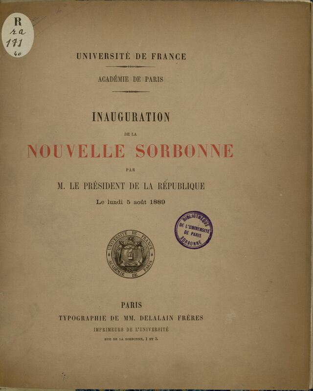 Cette collection réunit des documents en majorité iconographiques, relatifs aux cérémonies organisées en Sorbonne (rentrées des facultés, doctorats honoris causa, inaugurations, commémorations…), principalement aux 19e et 20e siècles. Elle a également vocation à accueillir des programmes imprimés et des textes de discours prononcés à l’occasion de ces cérémonies.