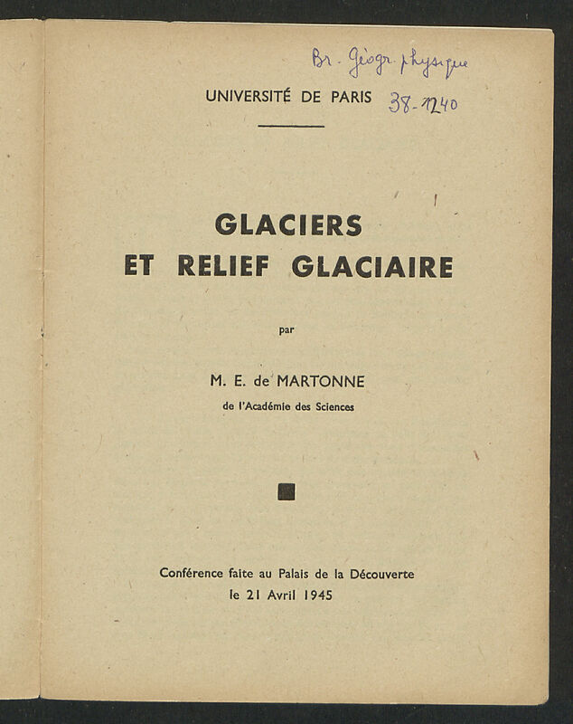 Glaciers et relief glaciaireMartonne, Emmanuel de (1873-1955)