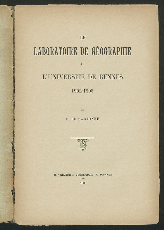 Le Laboratoire de géographie de l'Université de Rennes. 1902-1905Martonne, Emmanuel de (1873-1955)