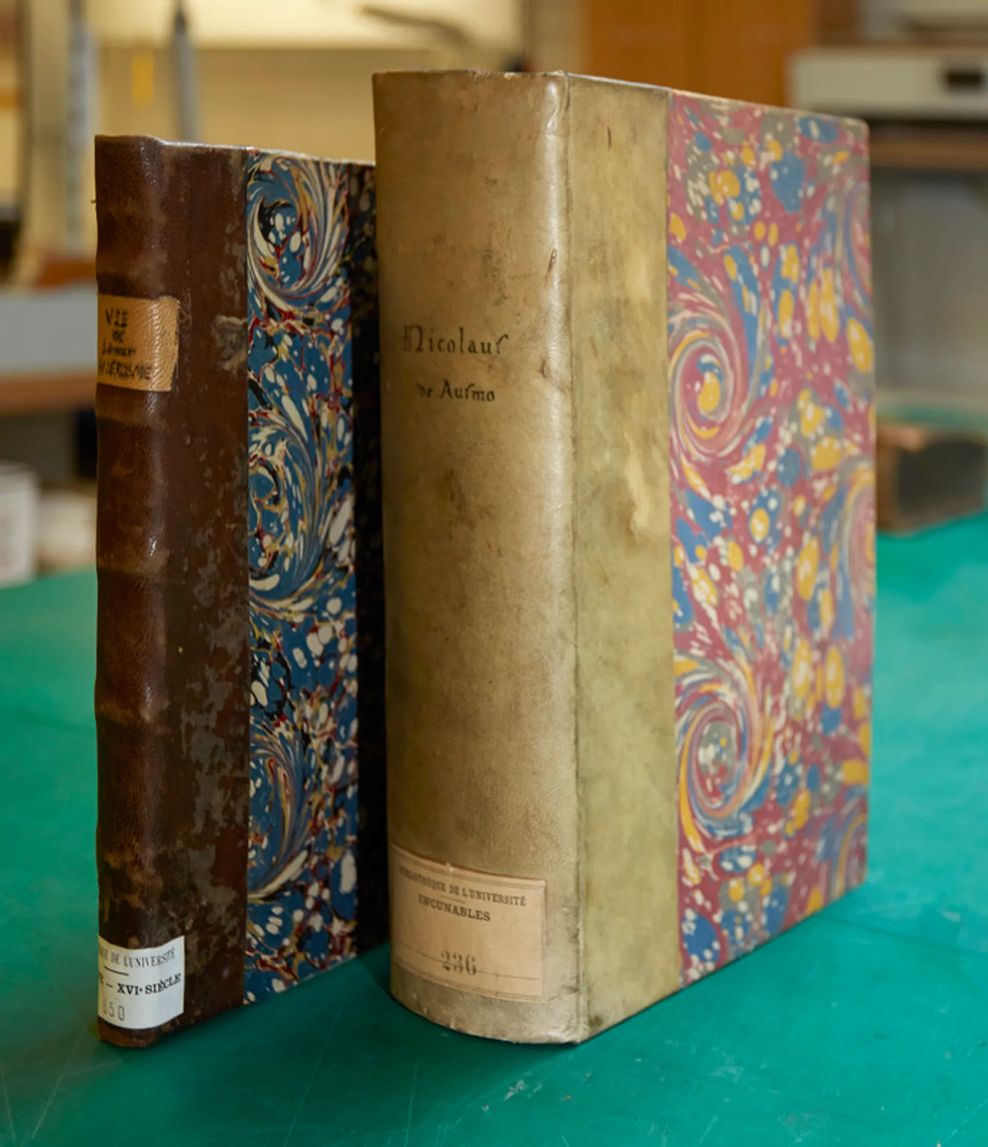 Loin de l’animation des espaces d’accueil et des salles de lecture de la Sorbonne se trouvent des ateliers dont le grand public ne soupçonne pas forcément l’existence. Dédiés à la conservation et à la restauration des fonds placés sous la responsabilité du Département des Manuscrits et Livres Anciens (DMLA) de la bibliothèque, l’atelier de restauration est le lieu de travail quotidien d’une équipe chargée d’intervenir sur les documents de manière préventive ou curative, par exemple dans le cadre d’une demande de consultation, de prêt pour une exposition, ou de numérisation.