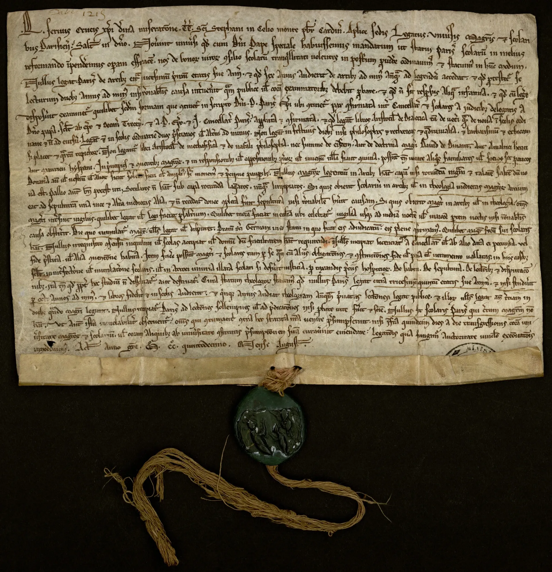 « En magasin, nous avons une contrainte : une fois traité, il faut que le document retrouve sa place dans un espace déterminé par sa cote, » explique Sylvie Struyve. « Certains documents font partie d’une série, c’est-à-dire qu’ils sont rangés dans des boîtes spécifiques sur les étagères », héritage des modes de classement des siècles précédents. Il faut parfois faire la part entre la meilleure solution de conservation pour le document individualisé et celle assurant sa conservation au sein d’un ensemble qui fait lui-même sens. « De même, les documents conservés en liasses sur lesquels nous avons dernièrement travaillé se présentent liés ensemble grâce à un cordon qui traverse toutes les pièces et une petite pâte de parchemin pour maintenir l’ensemble. Lorsque ce type de conditionnement s’avère trop problématique pour la conservation pérenne des documents, on peut être amenées à ne pas le remettre en place (tout en conservant l’ensemble des éléments constitutifs), mais chaque fois que c’est possible on a à cœur de préserver dans le montage d’origine. » Certains « trésors » comme les statuts de l’Université ont été mis à part et ont fait l’objet de conditionnements particuliers, mais ce traitement ne peut pas être appliqué à tous les documents.