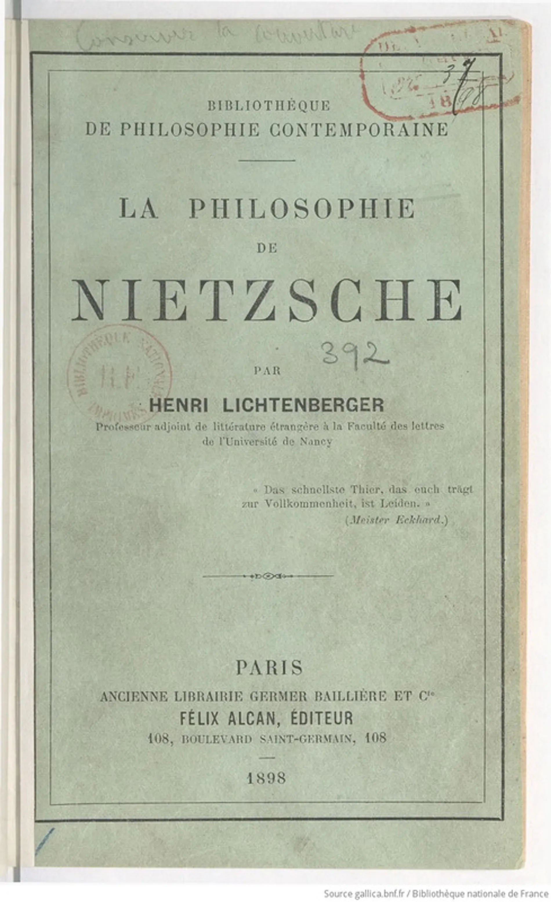 Henri Lichtenberger, La Philosophie de Nietzsche, Paris : Félix Alcan, 1898. Source : gallica.bnf.fr