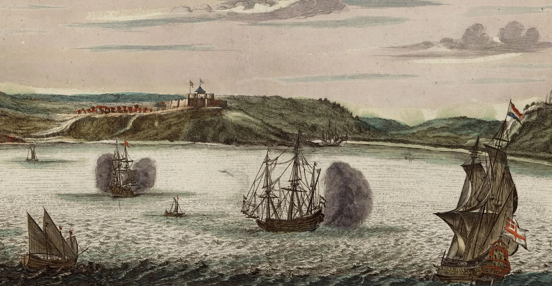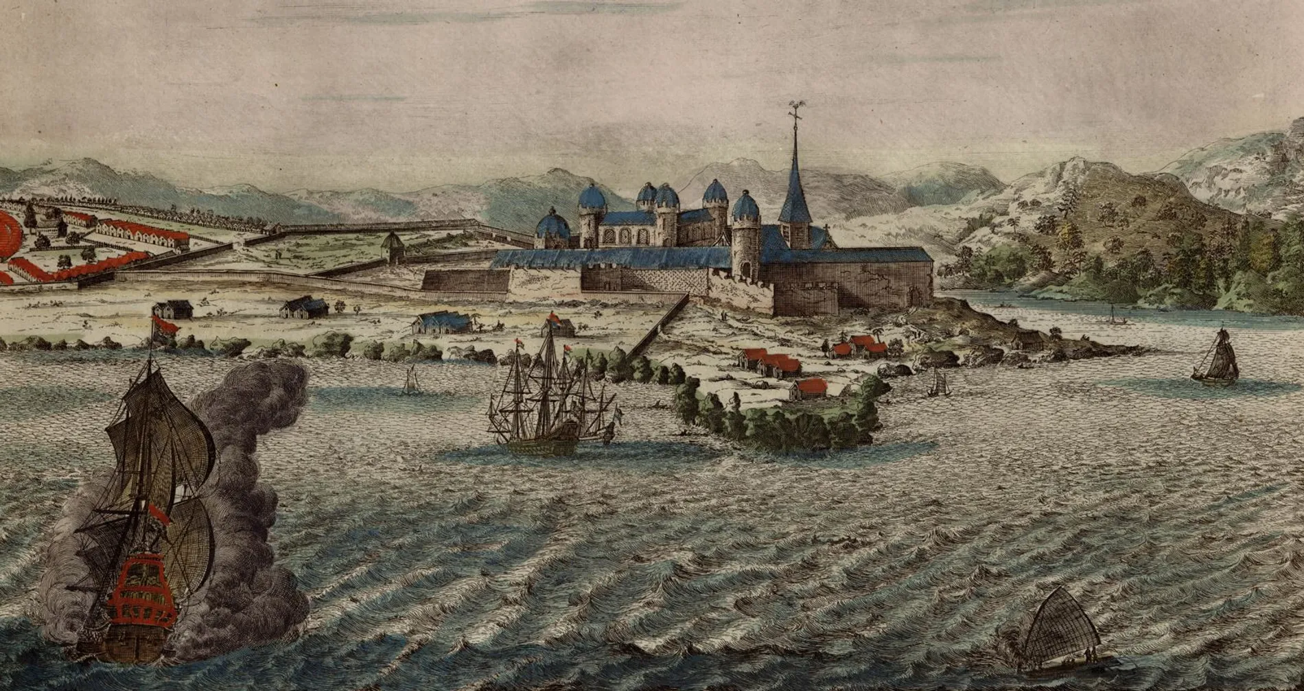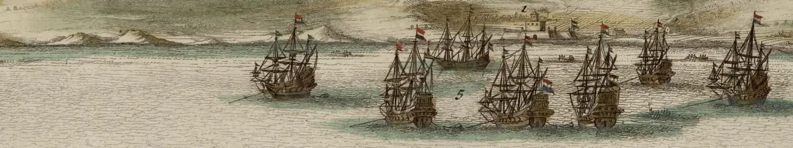 En 1637, les Hollandais de la Compagnie néerlandaise des Indes occidentales s’emparent d’Elmina. À la fin des années 1650, Kormantin passe quant à lui brièvement sous contrôle suédois, puis les Anglais en récupèrent le contrôle de 1660 à 1665, avant d’en être chassés pour de bon par les Hollandais. Ce contexte de luttes répétées et de possessions fluctuantes entre puissances colonisatrices (qui se poursuivront jusqu’au XIXe siècle) conduit Dapper à se livrer à de longues descriptions d’opérations militaires et explique la fumée des tirs de canon représentés par Van Meurs autour des navires croisant au large des deux forteresses.