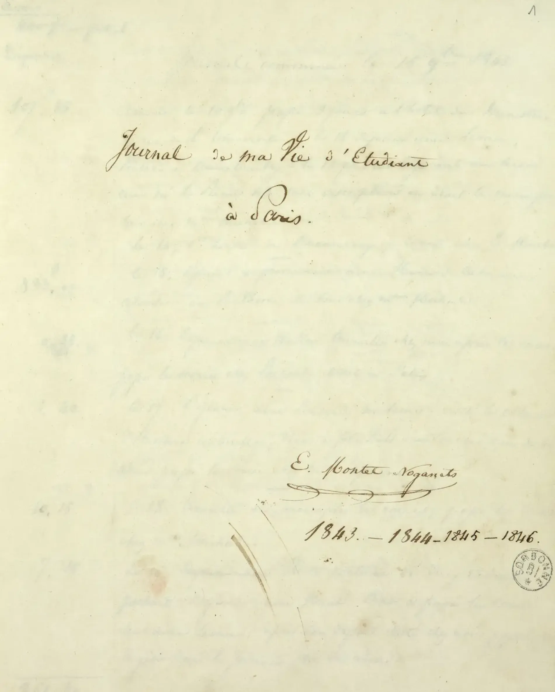 La BIS conserve et a numérisé le « Journal de ma vie d’étudiant à Paris » (cote MS 2627) rédigé de 1843 à 1846 par Émilien Montet-Noganets, né en 1825 et originaire de Montauban, qui « fait son droit » à Paris. Il passe au total six ans dans la capitale, où il arrive en 1840, vraisemblablement pour effectuer sa scolarité dans un lycée. Son journal concerne les trois dernières années de son séjour, durant lesquelles il prépare sa licence de droit. Cet ego-document de 150 pages manuscrites permet d’entrevoir la réalité de la vie étudiante du milieu du XIXe siècle et éclaire sur le rôle du journal intime pour un étudiant.