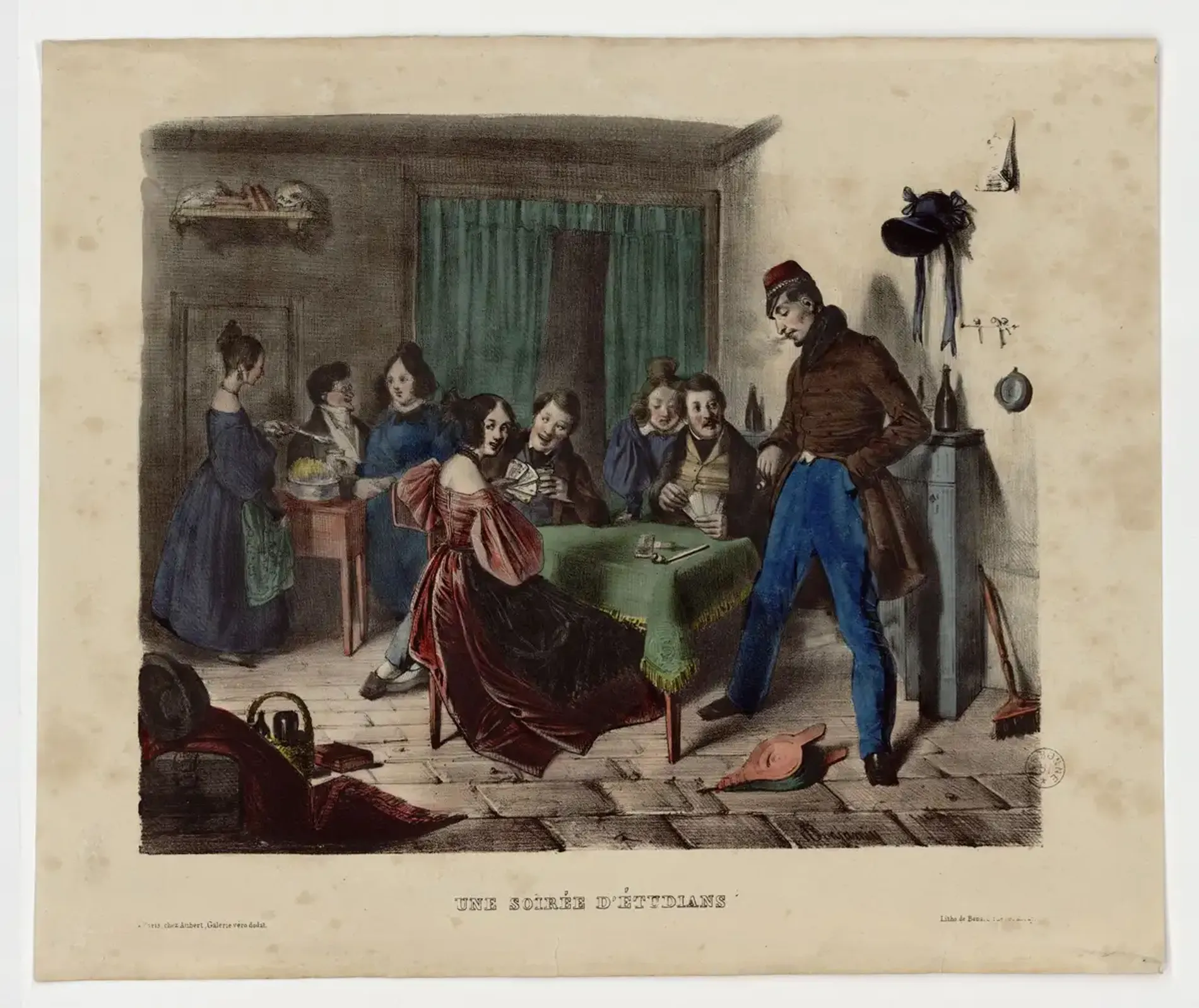 Figure 4 : « Une soirée d’étudians » (1836-1841) de Jean-François Bénard. BIS, ESTAMPE 83, pièce 2. En ligne sur NuBIS.
