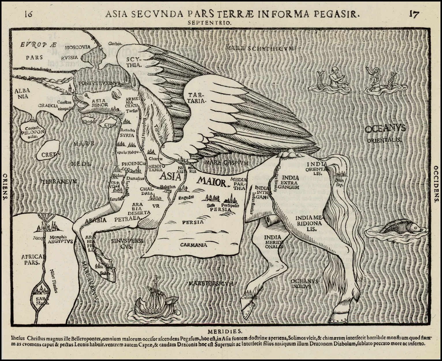 Heinrich Bünting, Asia Secunda Pars Terrae in Forma Pegasir, Itinerarium sacrae scripturae, 1581. En ligne sur Wikimédia Commons.