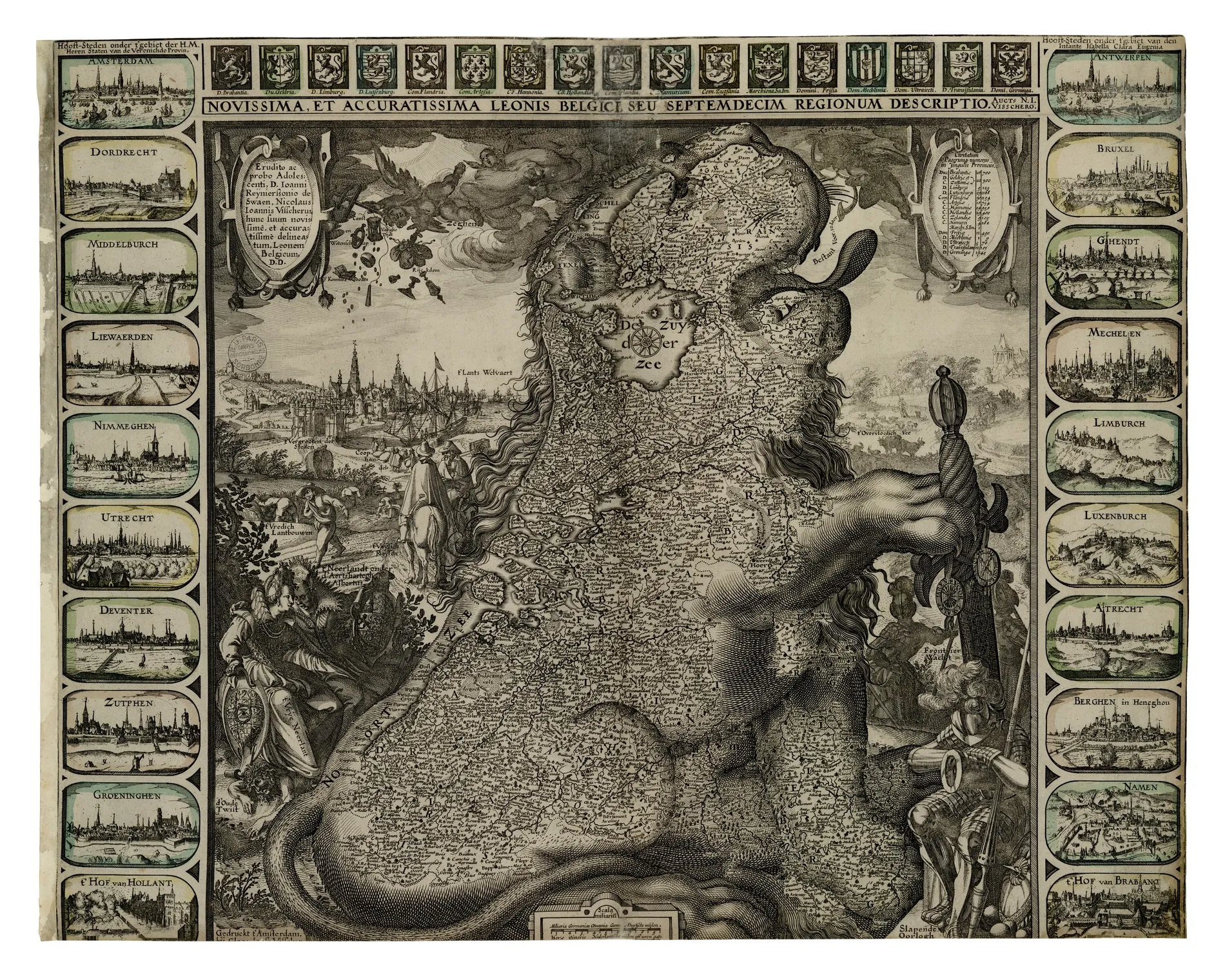 Claes Jansz Visscher, Novissima, et accuratissima Leonis Belgici, seu septemdecim regionum descriptio, Amsterdam, 1611. BIS, A 507-3, Pièce 91. En ligne sur NuBIS.