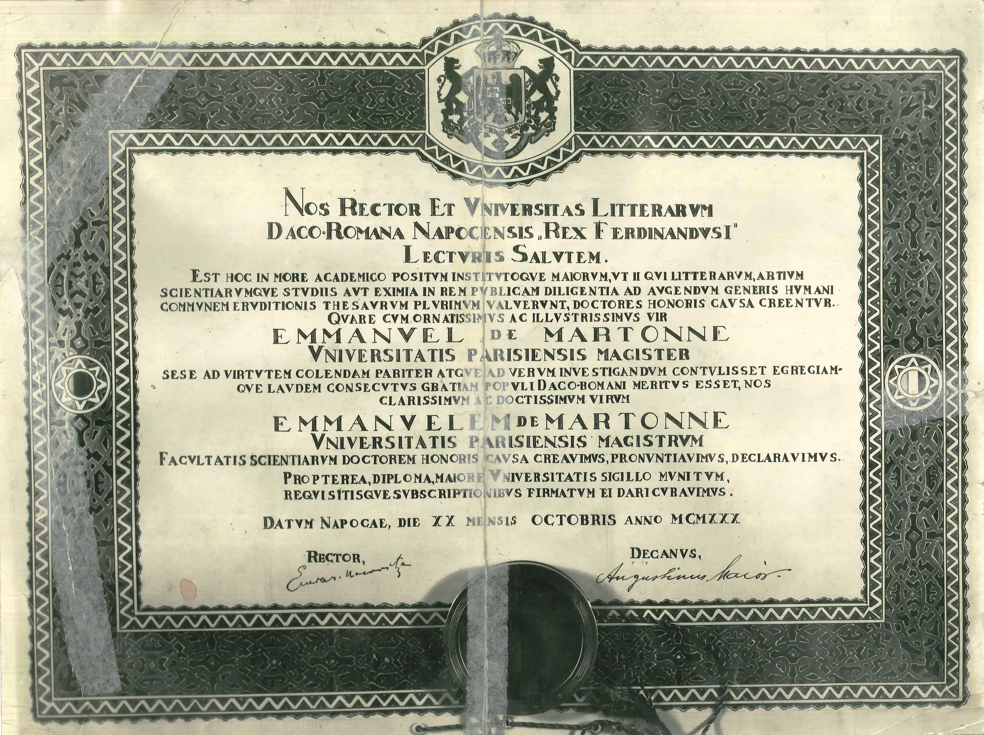 Au cours de cette célébration des dix ans de l’Université de Cluj, qui se déroula entre le 20 et le 21 octobre 1930 en présence de la famille royale roumaine (Carol II étant revenu de son exil à l’étranger le 6 juin 1930), un événement spécial fut organisé : la remise des titres de Docteur Honoris Causa pour la Reine Marie de Roumanie et sept autres personnalités scientifiques étrangères. La liste complète des lauréats comprenait Metodie Zavoral (l’abbé du monastère de Strahov à Prague), Matteo Bartoli (professeur universitaire à Turin), le comte de Saint-Aulaire (diplomate français), Henry Roger et Emmanuel de Martonne (tous deux professeurs à l’Université de Paris), Henry Wickham-Steed et Robert William Seton-Watson (savants et publicistes britanniques).