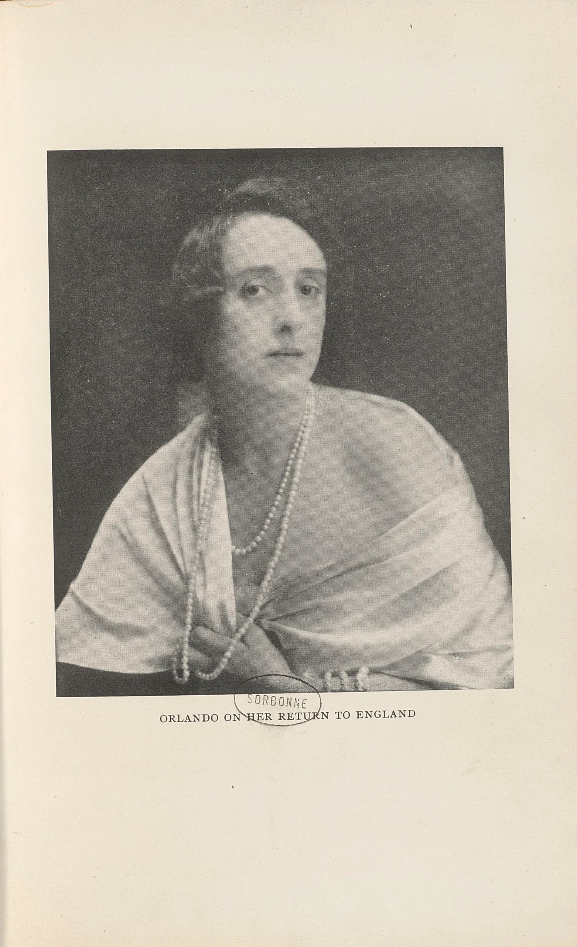 Fig. 1. Lenare, Orlando on her return to England, photographie reproduite dans Orlando: a biography, Virgnia Woolf, London, Hogarth Press, 1928. BIS, R 8= 2526. En ligne sur NuBIS.