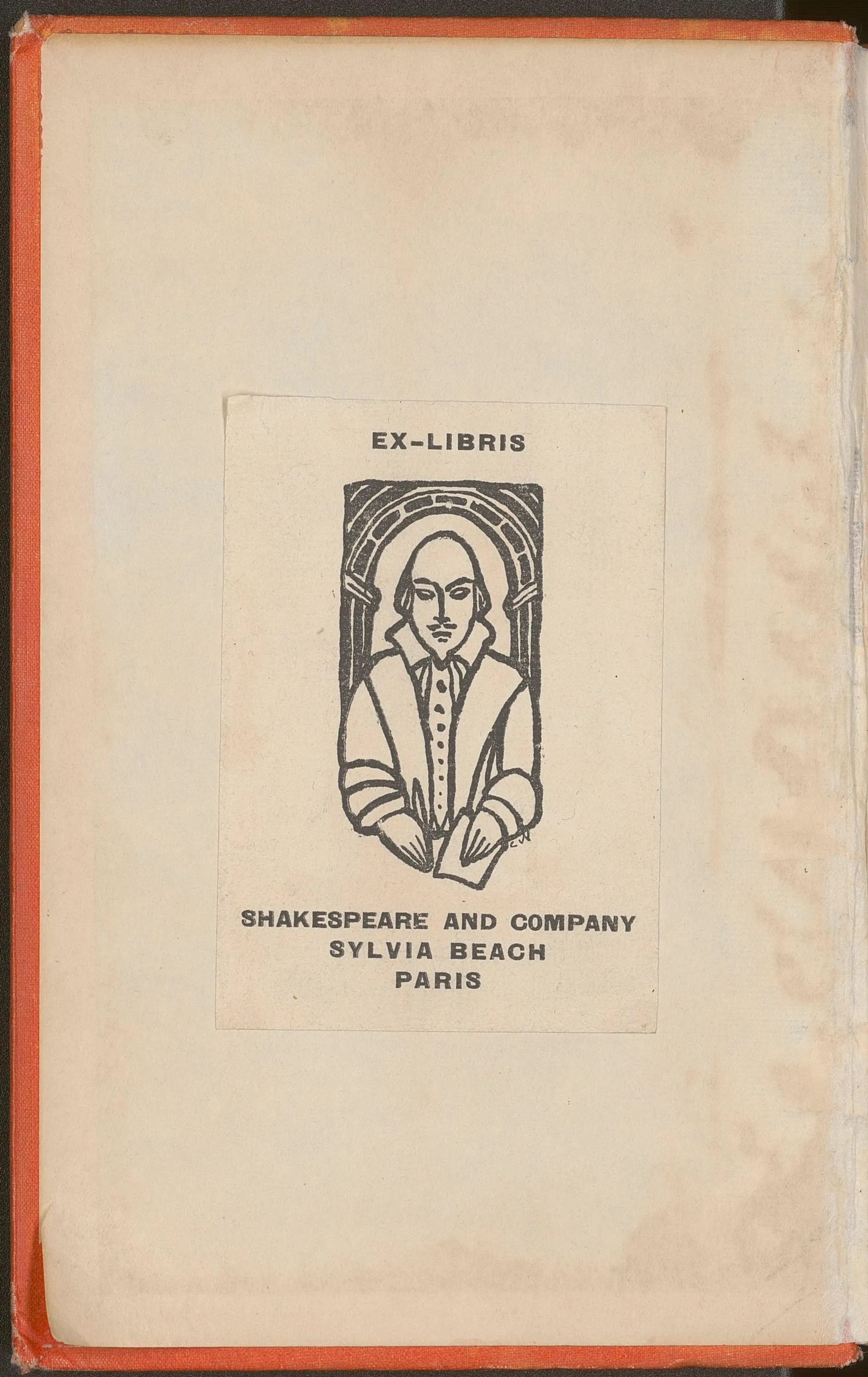 Fig. 6. ex-libris de Sylvia Beach, dans Orlando: a biography, Virgnia Woolf, London, Hogarth Press, 1928. BIS, R 8= 2526. En ligne sur NuBIS.