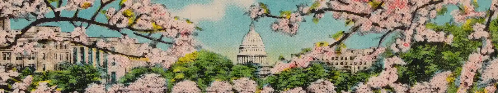 Carte à Mrs Lloyd Frankenberg (Loren MacIver), Capitole et cerisiers en fleur, Washington D.C., 2 avril 1950 (reproduite avec l’aimable autorisation de Farrar, Straus and Giroux)