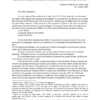 - Lettre de Frédéric Le Play à Augustine Fouache, datée : Londres, hôtel de Cromwell-road le 11 août 1862