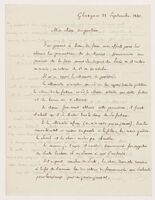 Lettre de Frédéric Le Play à Augustine Fouache, datée : Glasgow 22 septembre 1860 Lieu d'expédition : Glasgow