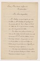 Lettre de Frédéric Le Play à Augustine Fouache, datée : Paris, Place Saint-Sulpice, 6. 24 juin 1874 Lieu d'expédition : Paris