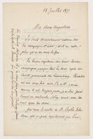 Lettre de Frédéric Le Play à Augustine Fouache, datée : 15 juillet 1877 Lieu d'expédition : Paris
