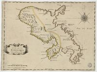 Publié dans l'atlas de Nicolas Sanson vers 1655, d'après la British Library. Publié à partir de 1650. Signé : APeyrounin sculp. Titre dans un cartouche ornemental. Rose des vents et rhumbs. Contours coloriés. Relief, ancrages, frontières entre les secteurs français et anglais, toponymie côtière. Orientée au Nord-Est. Échelle graphique : Eschelle de deux lieües = 8,6 cm. Échelle numérique : [ca 1:103 400 000]. Coordonnées géographiques : W 62°53'42" - W 62°34'58" / N 17°25'14" - N 17°12'38". Dans un recueil factice en 4 volumes, dont le 1er est précédé d'un titre manuscrit dans un encadrement gravé : "Atlas ou recueil des cartes geographiques des quatre parties du monde. De la biblioteque de M.r Philippe Despont prestre docteur en theologie". Note manuscrite dans l'encadrement du titre : "Attaché dans ce portefeuille pendant l'année 1670". -