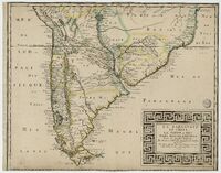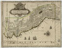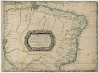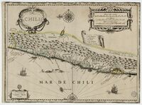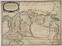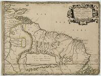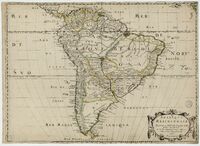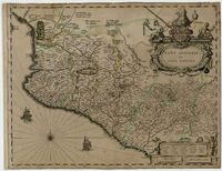 Proche à la carte du même titre, publiée en 1630 par Willem Jansz Blaeu dans : Atlantis appendix, sive pars altera. Daté à partir de 1630. Publié dans l'atlas de Janssonius en 1630. Sans texte au verso. Titre et échelle dans des cartouches ornementaux. Deux roses des vents, lignes de rhumb. Limites coloriées, relief, cours d'eau, lacs, toponymie côtière, ports, baies, colonies et villes. Échelle graphique : 60 leucæ Hispanicæ = 9 cm ; 50 miliaria Germanica communia = 8,7 cm (échelle calculée à partir d'une lieue d'Allemagne = 7,4080 km, d'après H. Doursther, Dictionnaire universel des poids et mesures anciens et modernes, 1965, p. 209) ; [ca 1:4 257 000]. Coordonnées géographiques : W 83°04' - W 70°28' / N 13°43' - S 1°48'. Dans un recueil factice en 4 volumes, dont le 1er est précédé d'un titre manuscrit dans un encadrement gravé : "Atlas ou recueil des cartes geographiques des quatre parties du monde. De la biblioteque de M.r Philippe Despont prestre docteur en theologie". Note manuscrite dans l'encadrement du titre : "Attaché dans ce portefeuille pendant l'année 1670" . -