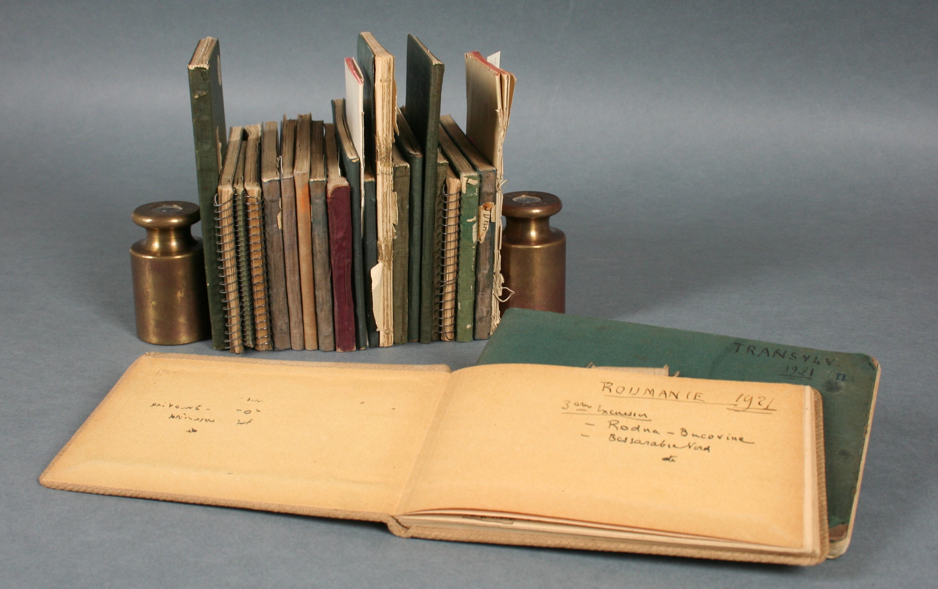 | Les carnets roumains devant l'ensemble du fonds des carnets de terrain d'Emmanuel de Martonne. |