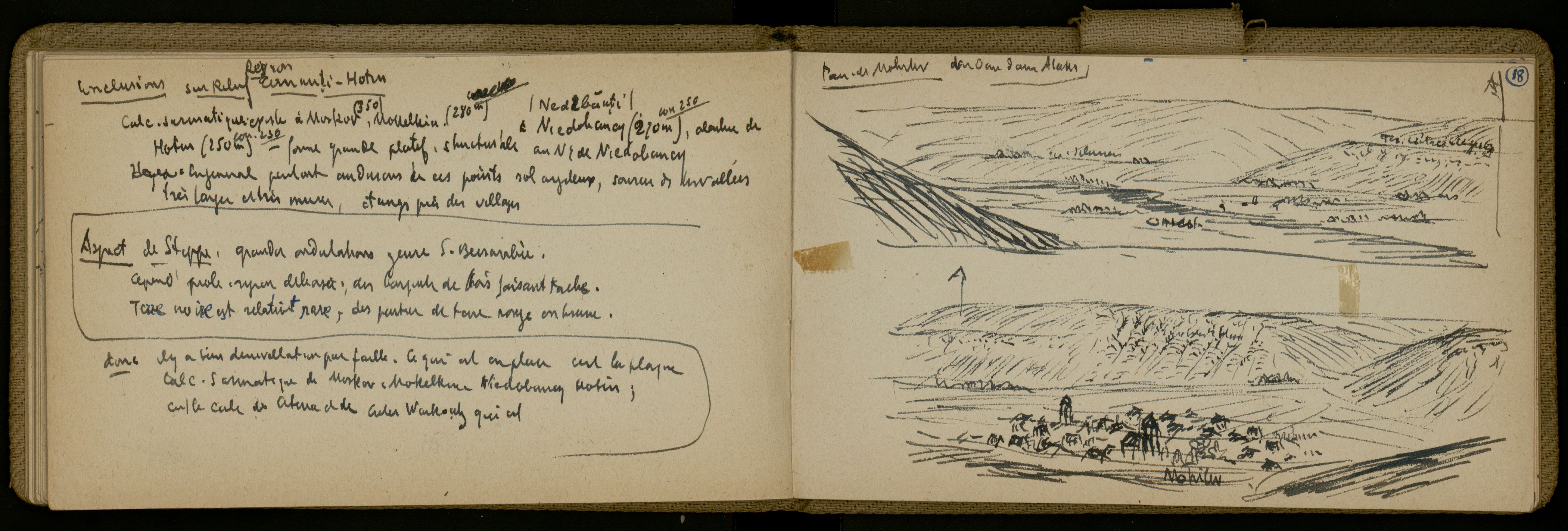 Dix ans après son terrain de 1921, Emmanuel de Martonne réutilise, entre autres, ses carnets de notes pour rédiger la somme que constitue le Tome IV sur l’Europe centrale de la Géographie universelle. Par exemple, pour élaborer la carte régionale de synthèse page 775 (figure 180 intitulée « Structure de la plate-forme moldave au 1 :2500000), il remobilise pour la petite zone de Cernauti-Hotin (coin nord-ouest de la carte) des résultats récoltés sur le terrain et inscrits dans le carnet [16] aux pages 17 et 18 (numérotation d' Emmanuel de Martonne).