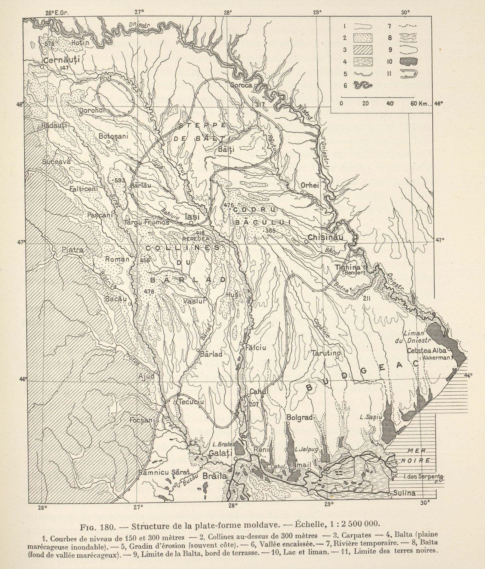 Figure 180 - Structure de la plate-forme moldave dans La géographie universelle, Tome IV, Europe Centrale, Bibliothèque de l'Institut de Géographie.