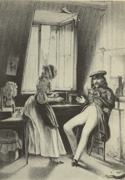 Paul Jarry, Étudiants et grisettes romantiques. Paris, 1927. Frontispice d'après une lithographie d'Henri Bouchot.