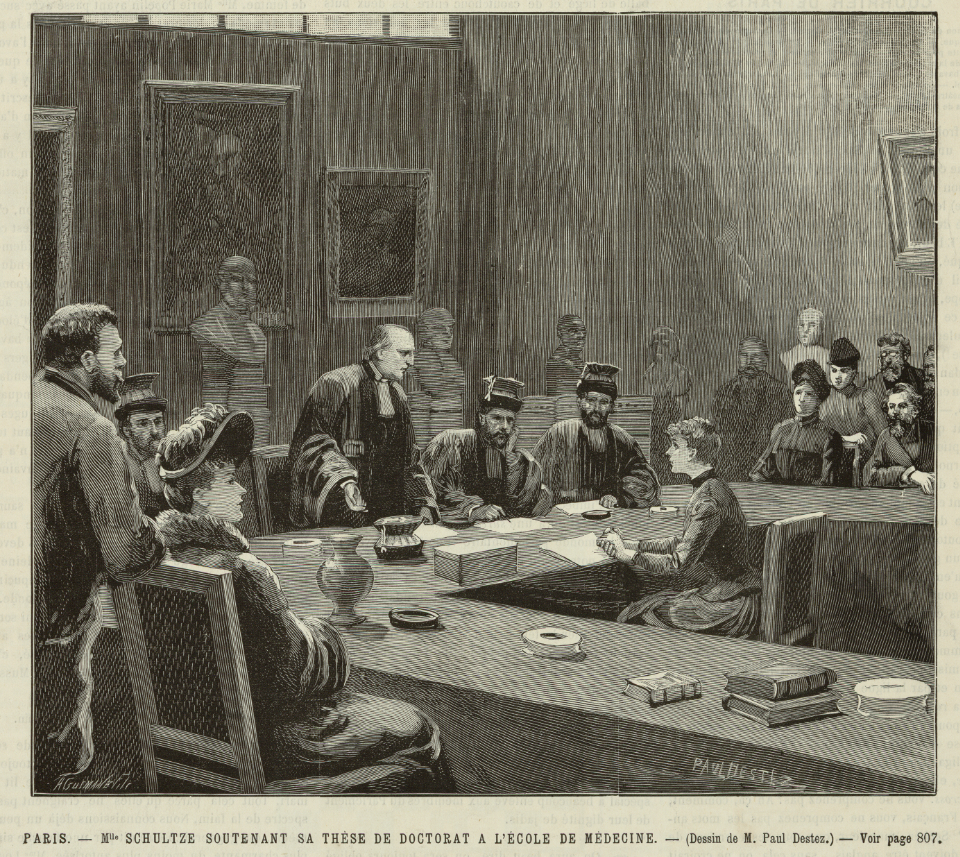 Madeleine Brès, par exemple, première Française à obtenir le doctorat de médecine en 1875, reçoit les éloges du doyen Adolphe Wurtz et du célèbre médecin neurobiologiste Paul Broca qu'elle a assisté provisoirement à l'hôpital de la Pitié Salpêtrière, pendant le siège de Paris et la semaine sanglante.