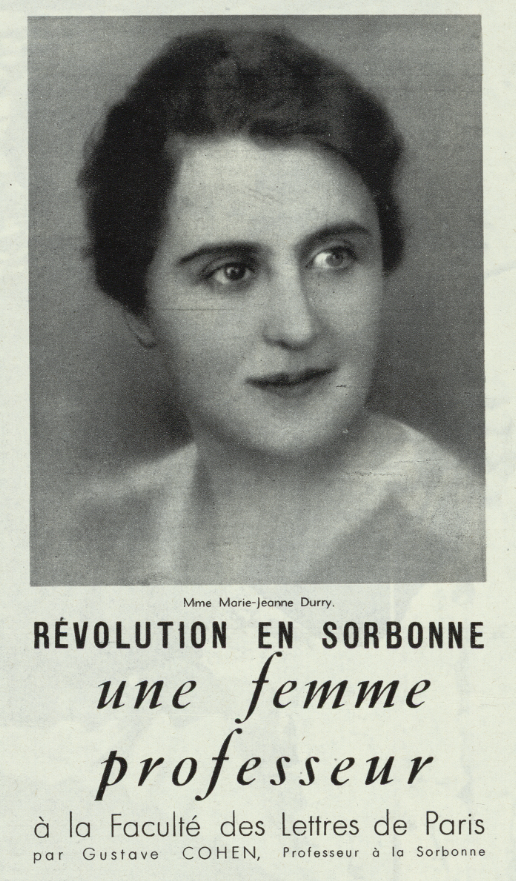 La Faculté des lettres doit, quant à elle, attendre 1947 pour compter sa première professeure titulaire, en la personne de Marie-Jeanne Durry.